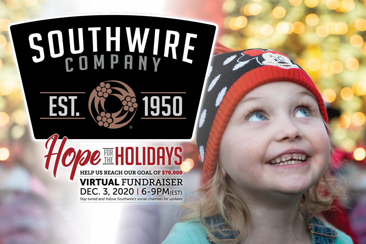 Additionally, in honor of Southwire’s 70th anniversary, the company will host a virtual Hope for the Holidays fundraising event on Dec. 3, from 6-9 p.m. (EST) with a goal to raise an additional $70,000 toward these causes by partnering with its Giving Back communities. The three-hour Facebook live event will feature a wide variety of musical performances, inspirational messages from special guests and sponsors and much more. The first 1,000 people to donate at the event will receive a special Southwire Hope for the Holidays long sleeved t-shirt.