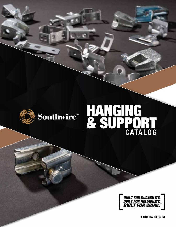 Southwire offers a comprehensive line of Hanging and Support, including over 300 Spring Steel items, with a variety of sizes used at the stud level of construction to hang, support or mount anything from wire and cable, conduit to rods, to strut, and steel boxes.